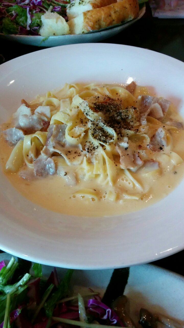 他の店で生麺カルボナーラ。美味しいけどじゃがいもが余計でした。混雑覚悟でルノワール展まで。何とか見れるレベルでした。