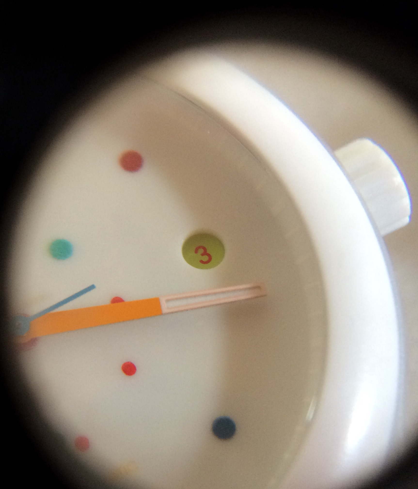 この子は裏面もカラフルです、選んだストラップの2色は、日付小窓に揃えたのでした。
