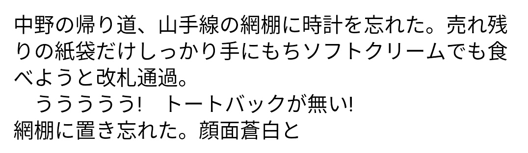 いれたまま帰りの地下鉄の網棚に忘れました。