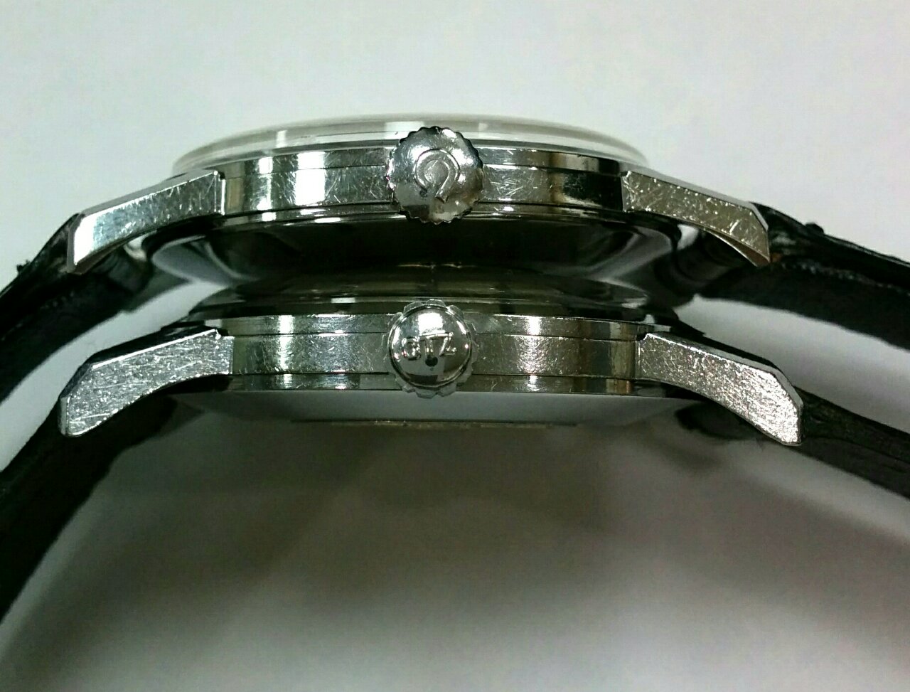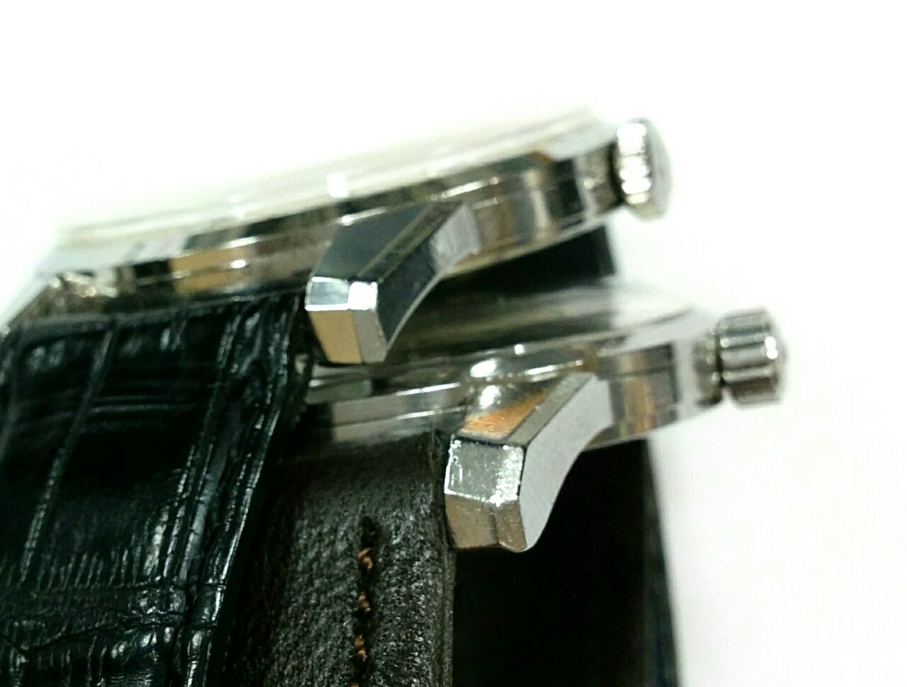 ラグが薄い、ラグの面取りが違う。裏ブタに製造番号が刻印されていない。