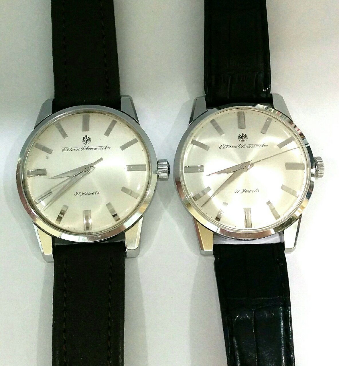シチズン・クロノメーターのステンレスモデル。 Aのモデルは針が平針、