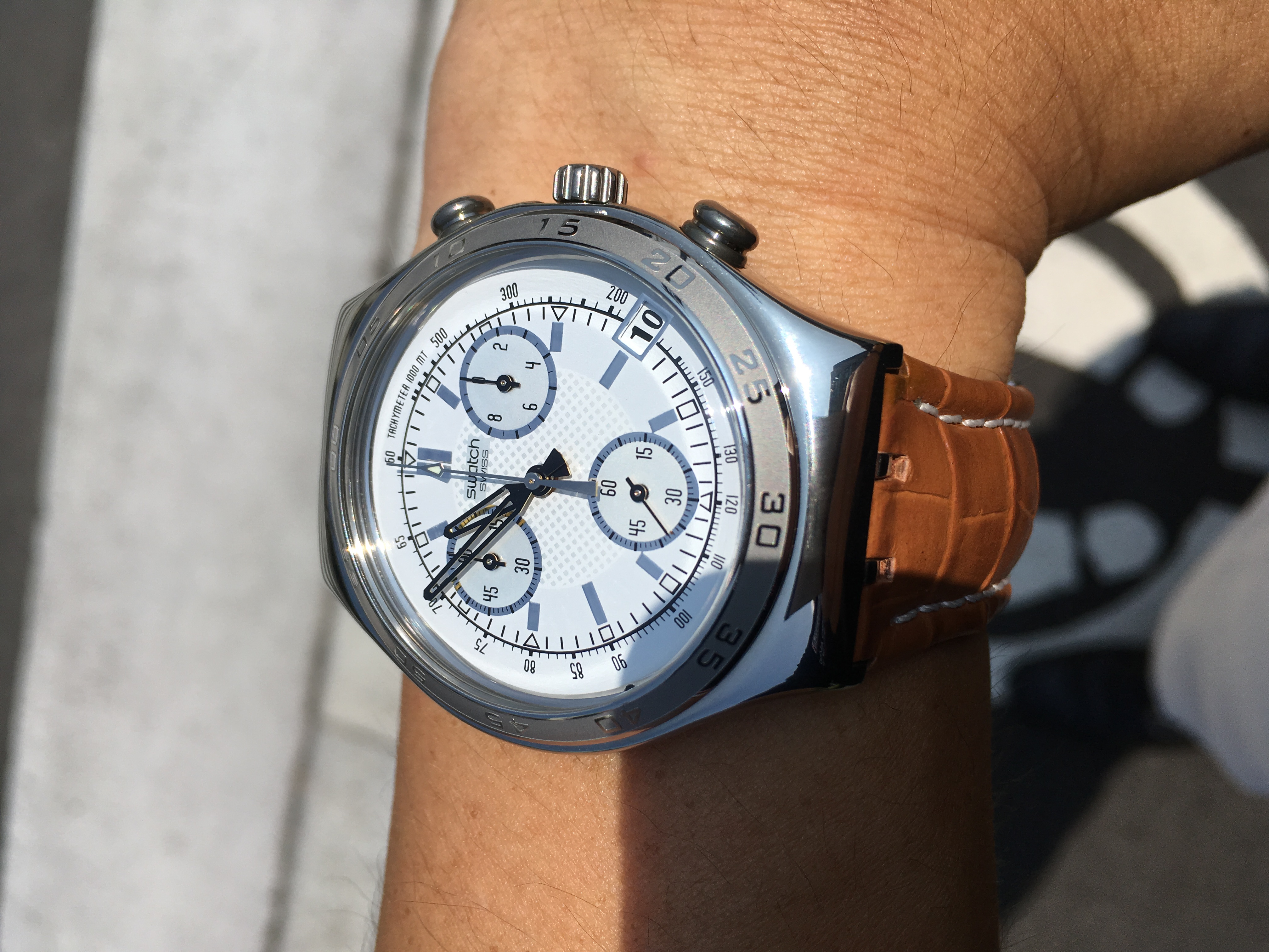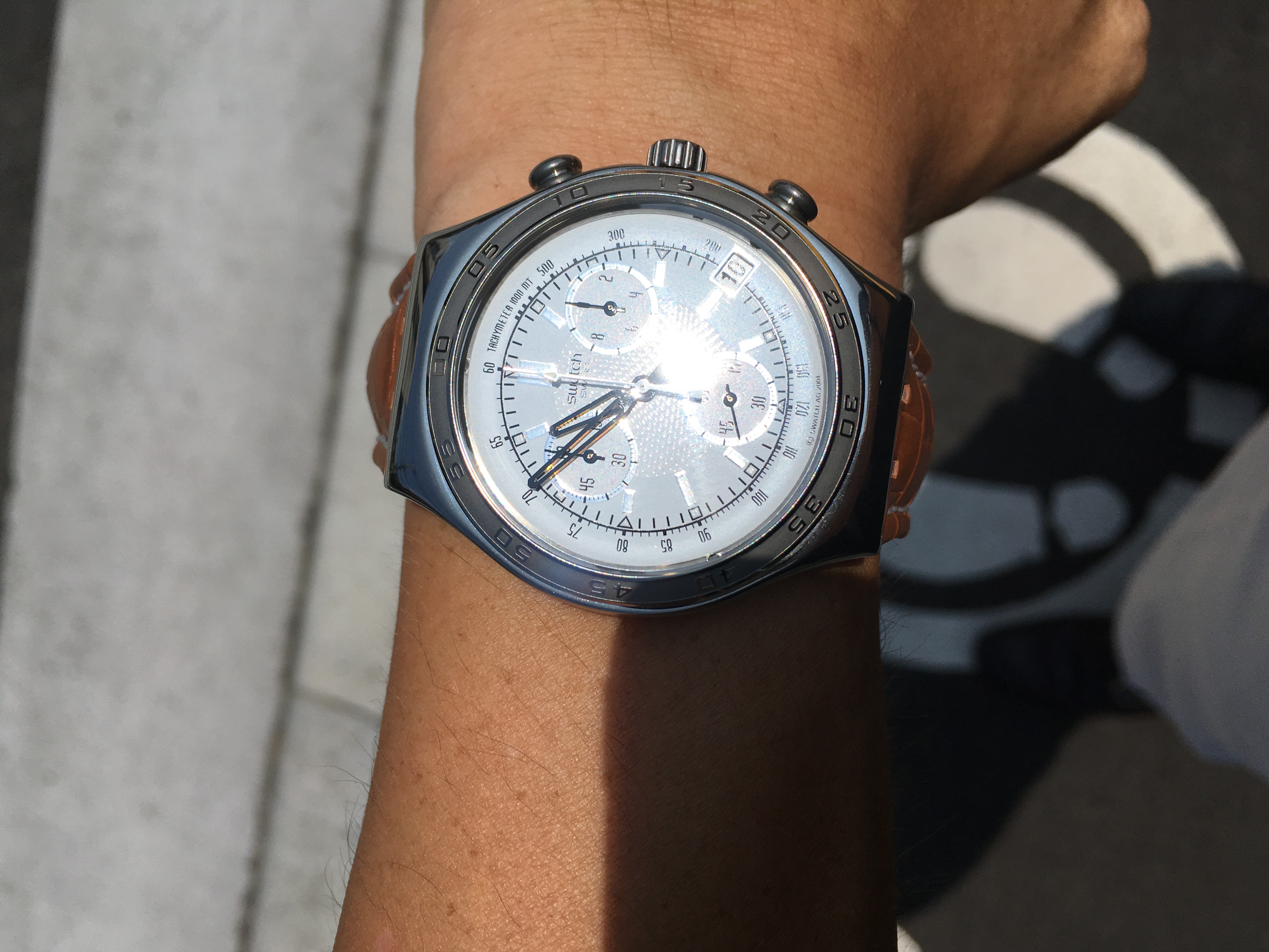 ここ二日は新デイトナを楽しみましたが、今日は現場に行く予定もあったので先月衝動買いしたSWATCH IRONYで出撃!