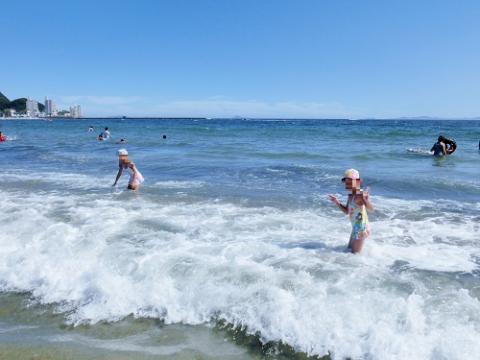 波に戯れる(って台風で若干波がありましたが)娘達も喜んでました。