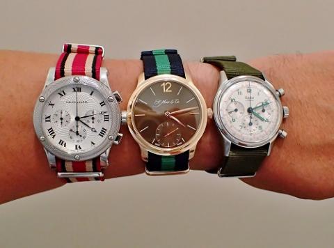 思い立ってNATOベルトが付いてる3個の腕時計を嵌めてみました。