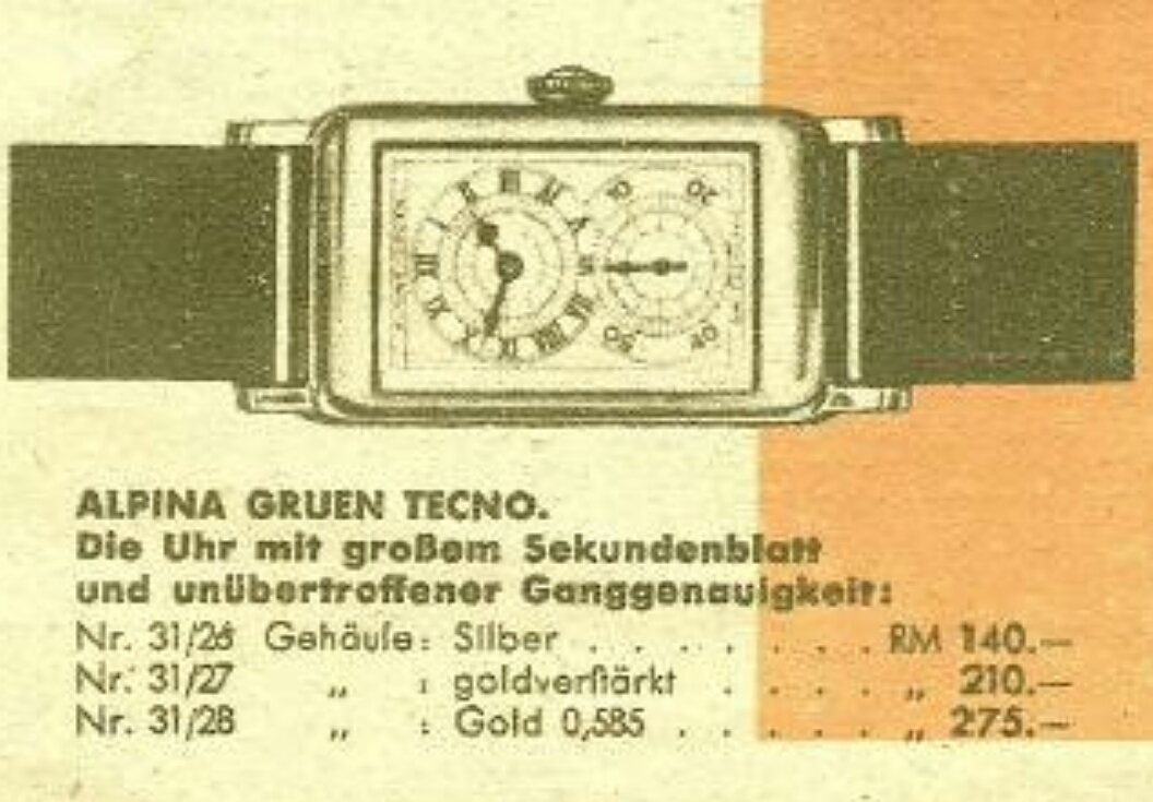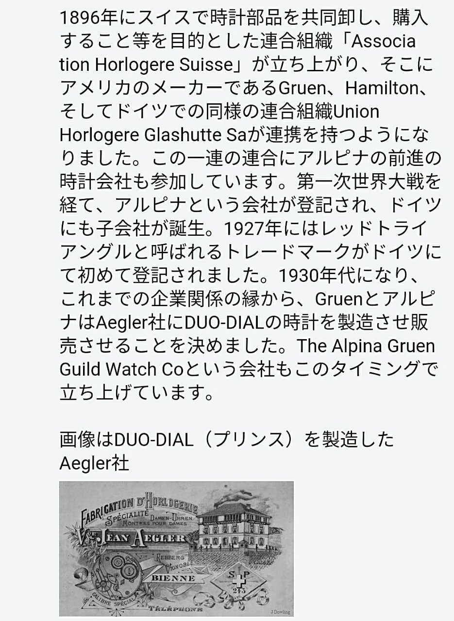 アルピナ&グリュエンはグリュエンと違いヨーロッパエリアから出てくるケースが多いようです。以前1本持っていました。 ダイヤルやケースはグリュエンより少し凝ったつくりになっていますね。