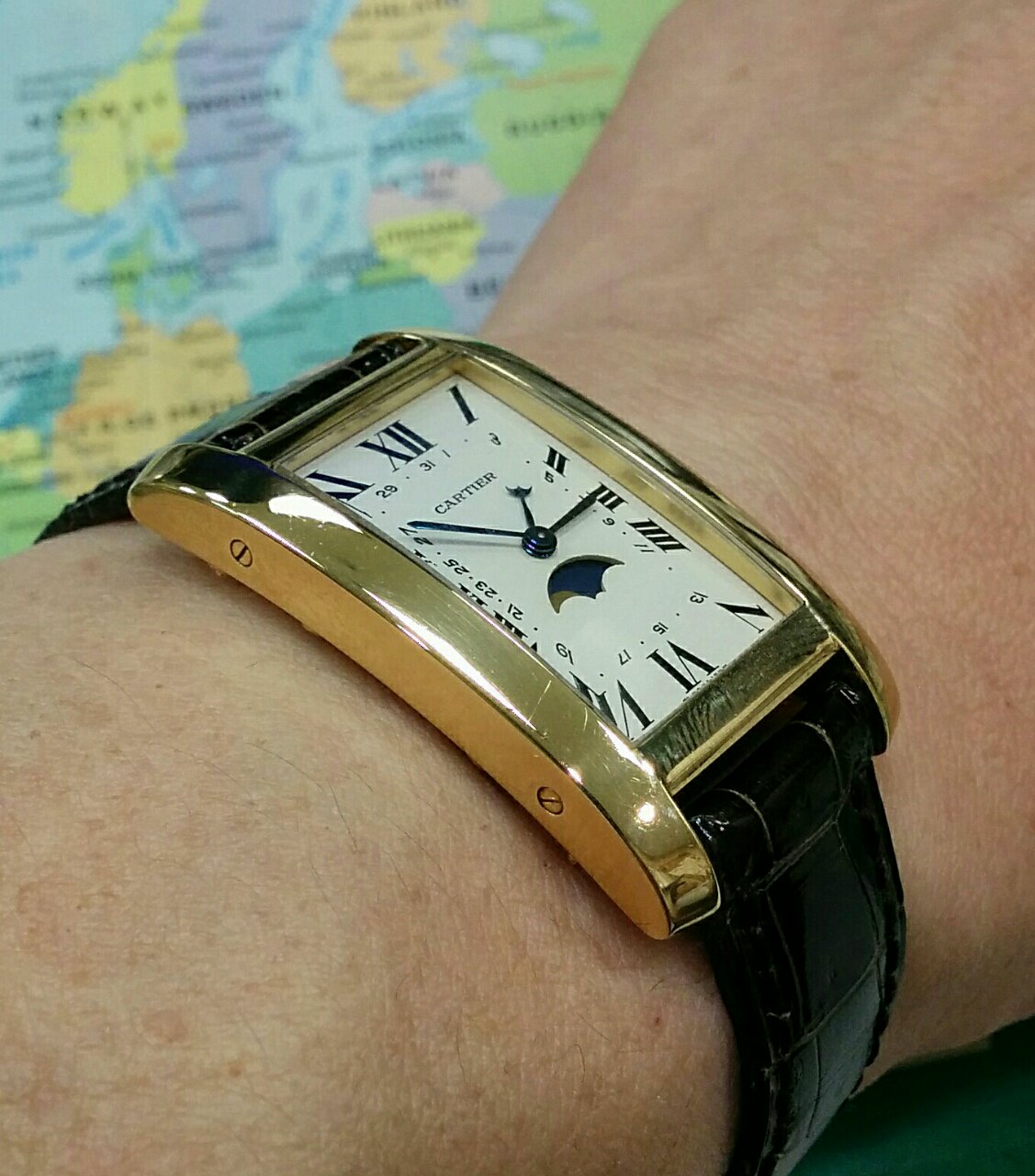 カルティエのタンクアメリケーヌは流線型で腕にフィット。