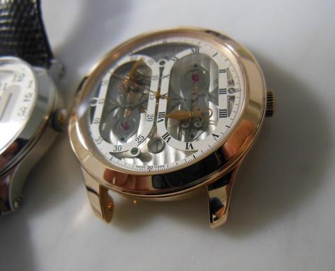 当時としては珍しかった文字盤側のスケルトンモデルであり
