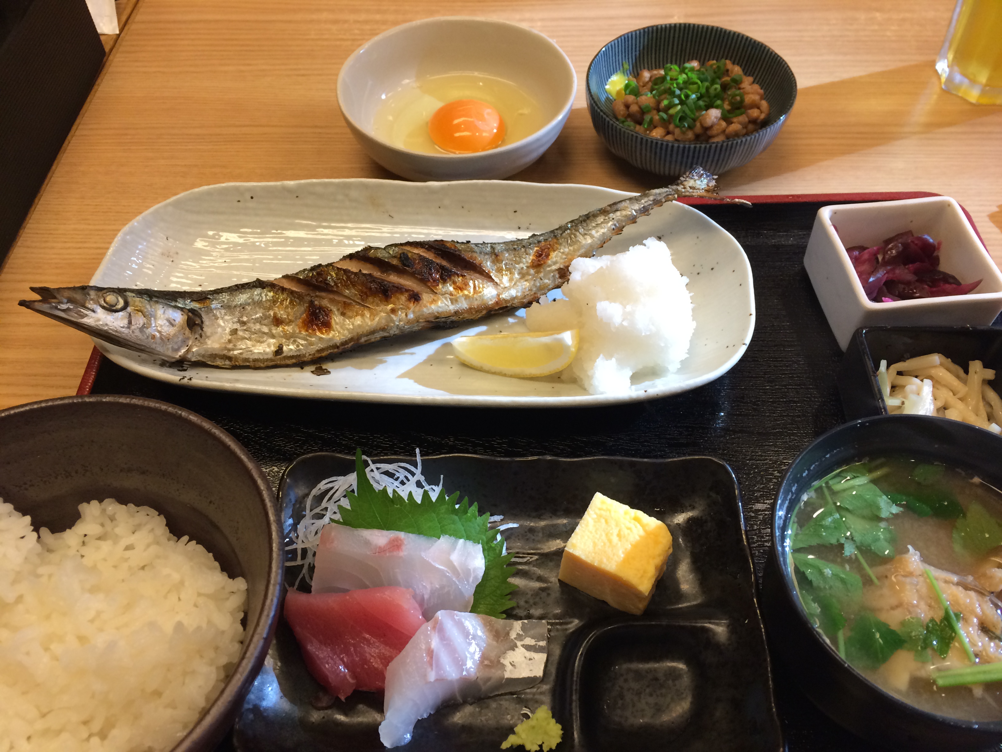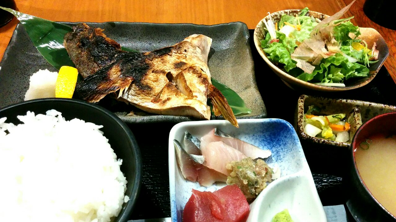 今晩は。焼き魚に刺身があると完璧です。