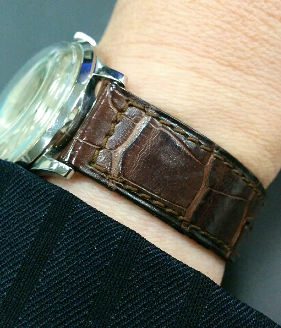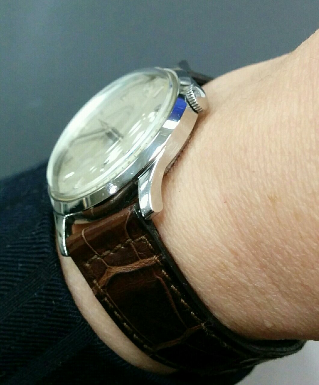 ダイヤルはアプライドの楔形インデックスでパテックの96の砲弾型とはちょっと