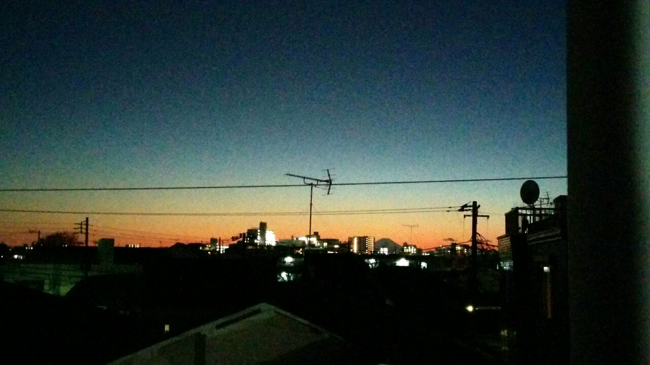 家のベランダから富士山のシルエットが綺麗です。