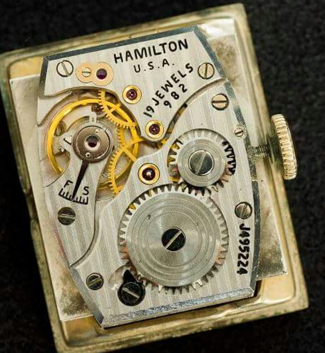 ムーブメントはプゾーのようにも見えるし、ハミルトンの982とも似ています。