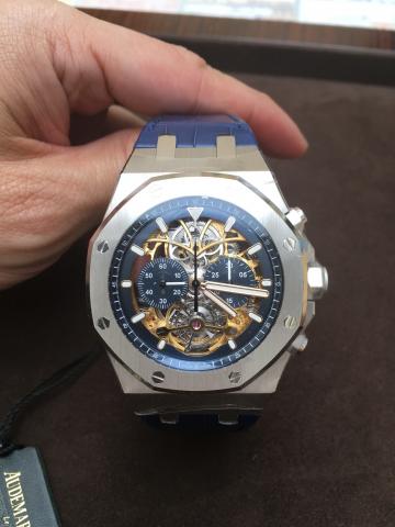 その一つが先日見せてもらったロイヤルオークトゥールビヨンクロノグラフですが、これPtで超ヘビー級です。