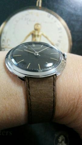 ビンテージのピッグスキンストラップが入手出来たので交換してみました。1940年代の時計としてはかなりモダンなデザインだと思います。ラグが見えないというのも好みが別れますがユニセックス的にも見えます。