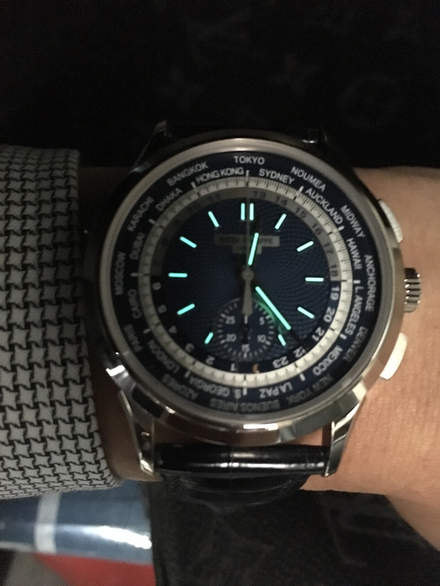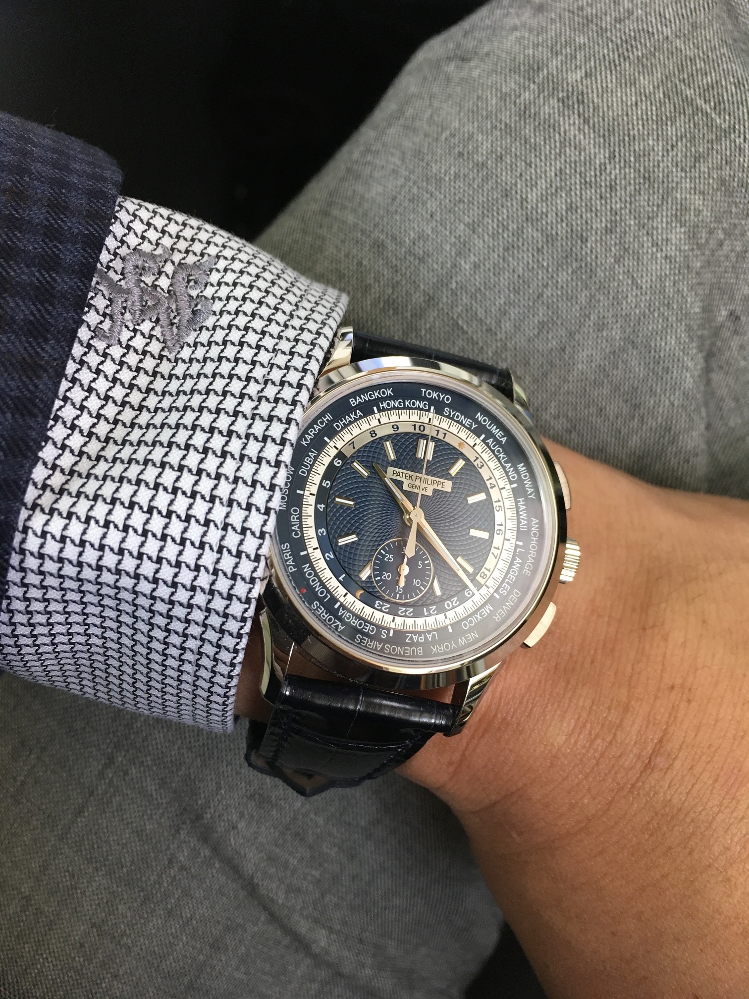 私がパテックフィリップで一番好きなのはワールドタイムモデル、続いてクロノグラフモデルでしたので、この二つが一つになればオーダーしない理由はありませんでした。