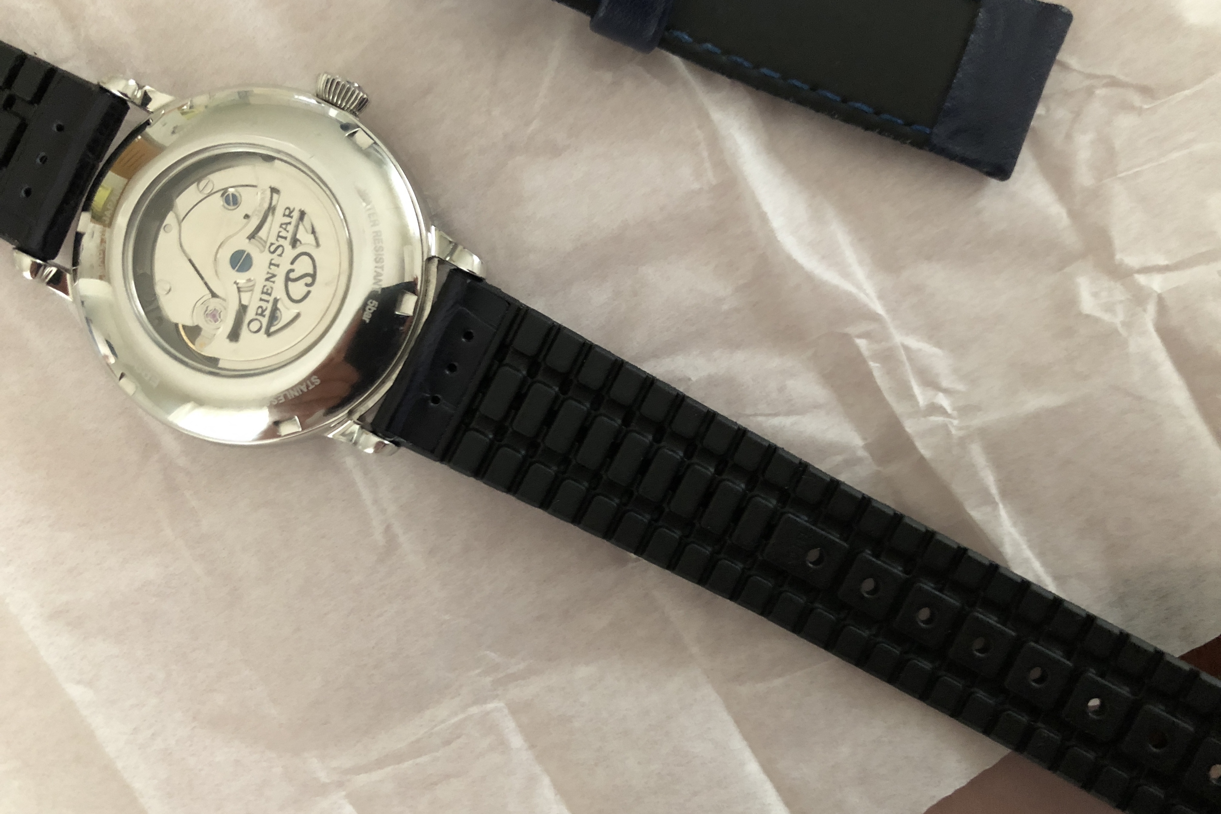 前回の投稿では、僕は同じHIRSCH社製のRUNNERというモデルをオリエントスターのメカニカルムーンフェイズに付けたというお話をしたのですが、RUNNERをしばらく使ってみて、一寸残念な状況が出てきました。RUNNERは、ベルトの裏側にラバーが貼ってあり、汗を防ぐことができるようになっているのですが、貼ってあるラバーは、一面フラットなものなので、汗をかくと、そのラバー全体が濡れて結構気になることがわかりました。