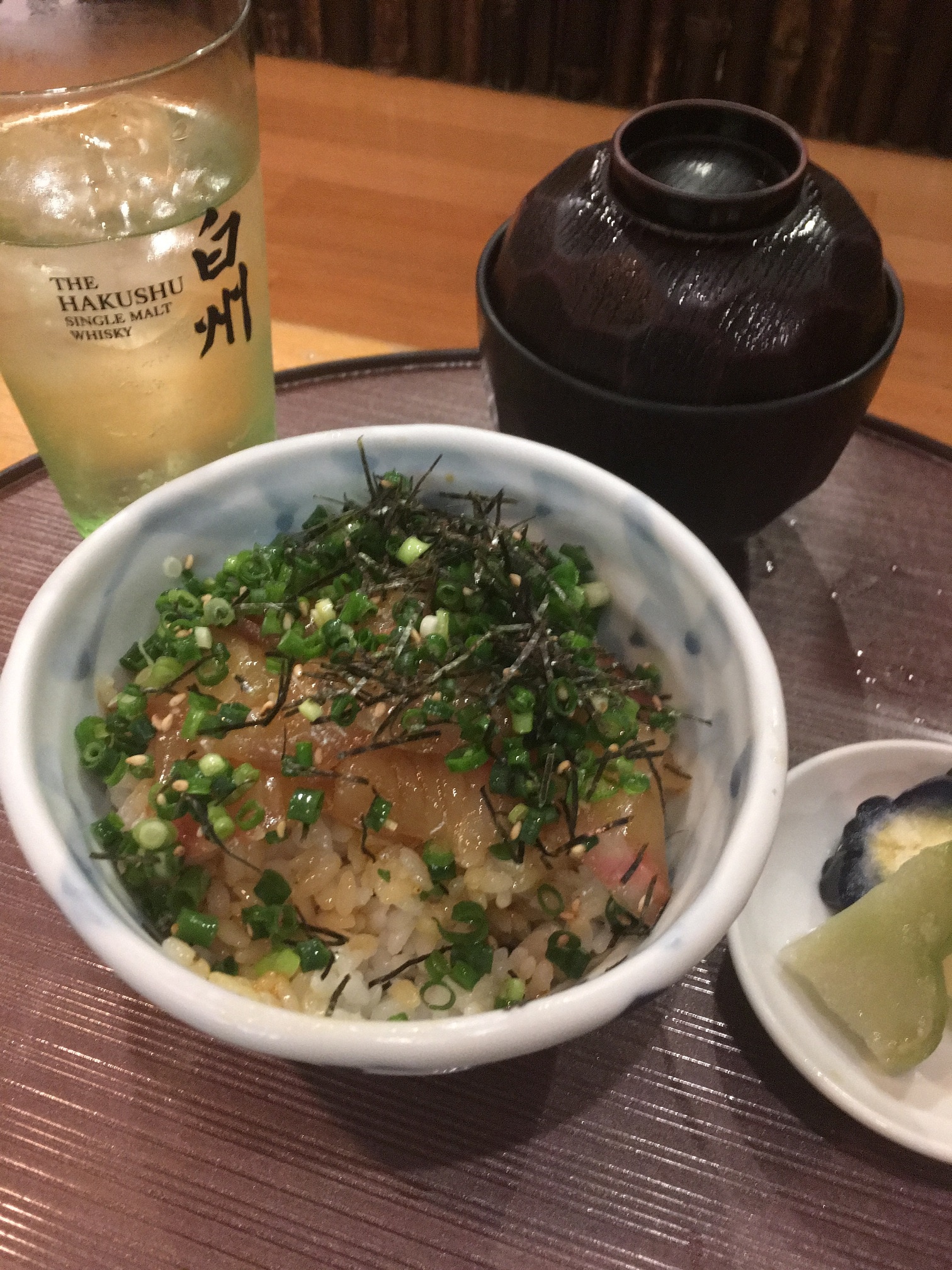焼き物は鮭でなくサクラ鱒と天然アユ京ナスのグラタン風も蟹がたっぷり入って美味しかったです。締めのご飯とみそ汁、漬けアジ丼でした。
