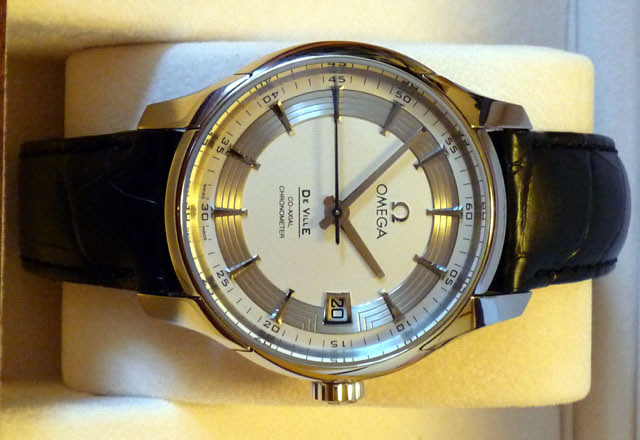先日(といっても数か月前)にハイエックセンター内のオメガブティックで、アワービジョンの18Kモデル(茶文字盤)が残っていると言われて見せていただきました。