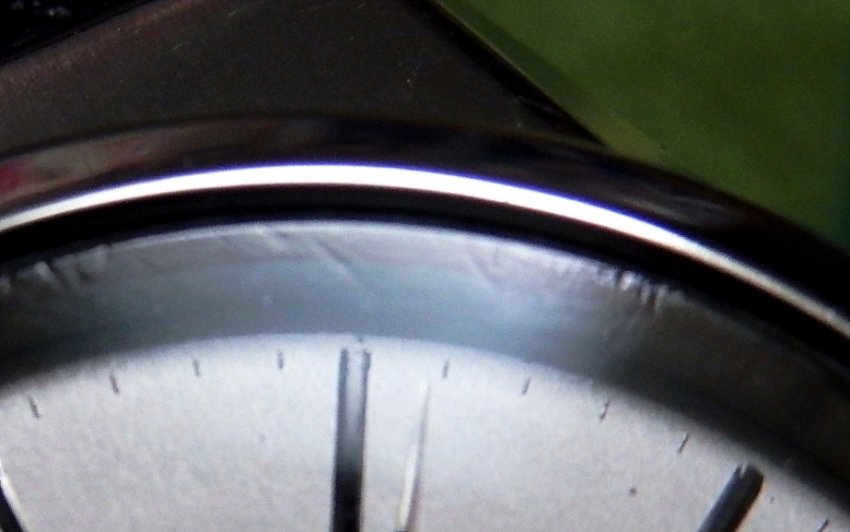 傷だらけだったフラットベゼルは、傷落としのついでに好みで曲面に磨き上げる。