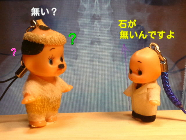 「えー、前回のレントゲンに有った石が、今回は見えないんですよ。石、出ました?」