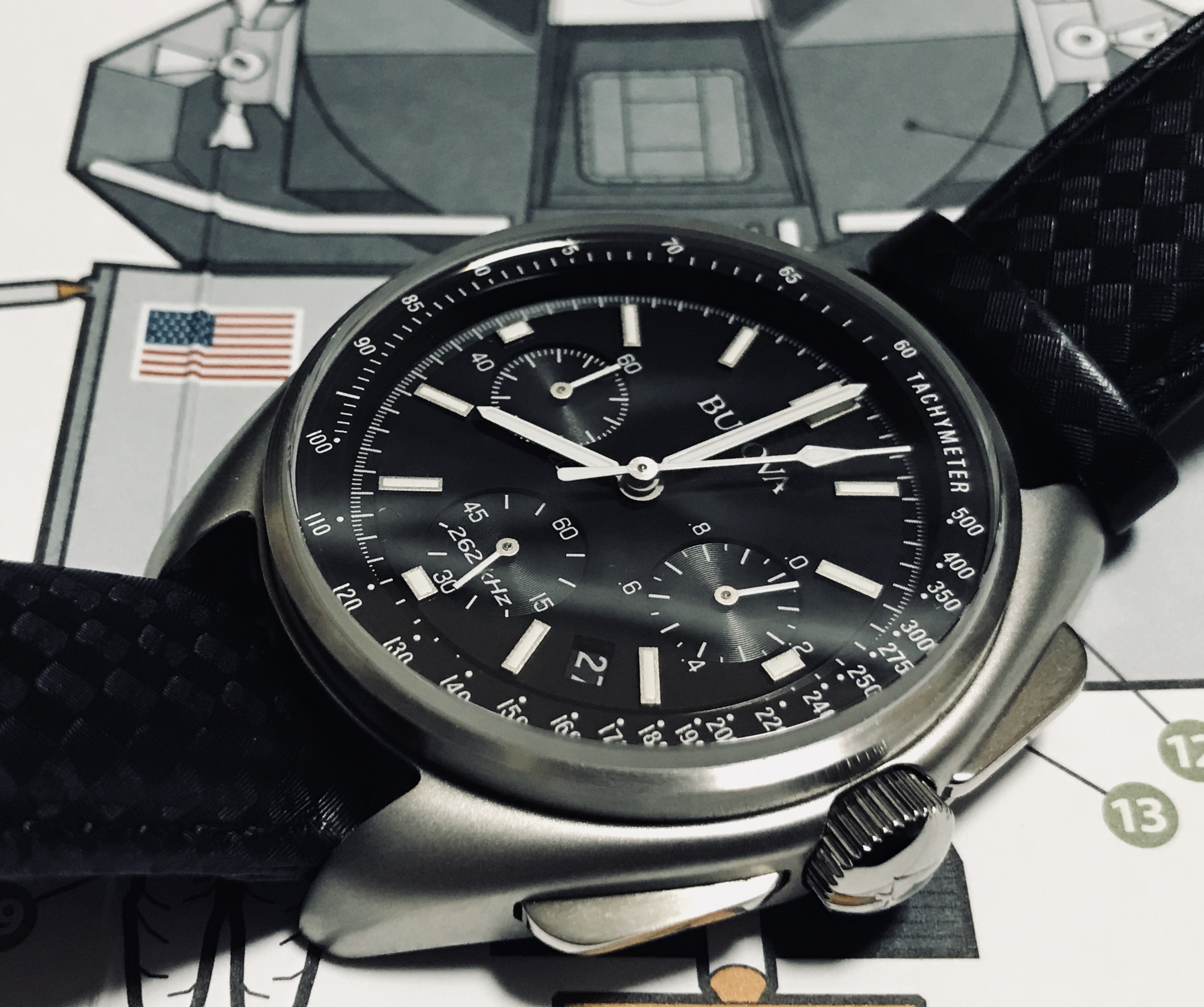 アポロ宇宙船の頃に小型の高精度なクオーツ時計はまだ開発中、ブローバの音叉時計が唯一軽量で正確だったので当時まだ主流だった機械式ゼンマイ時計に頼ることを恐れ、重要な計時機器にはブローバ製音叉時計が使われていました。しかも支給されたスピードマスターが壊れたという想定外の状況にも関わらず無事に月面ミッションに使用されたとなると、これはめちゃくちゃ格好いいじゃないですか!