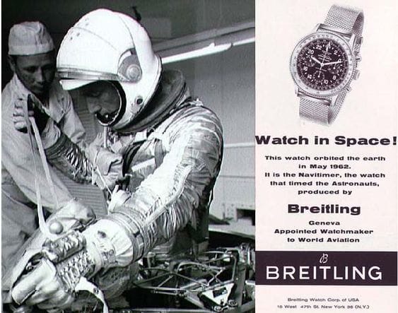 オリジナルセブンと呼ばれた米国宇宙飛行士の一人、スコットカーペンターがブライトリングに特注で作ってもらったもの。ギリギリセーフのロケット打ち上げの3日前にスコットカーペンターに届いたようです。この辺りのお話はブライトリングの公式サイトに書かれています。