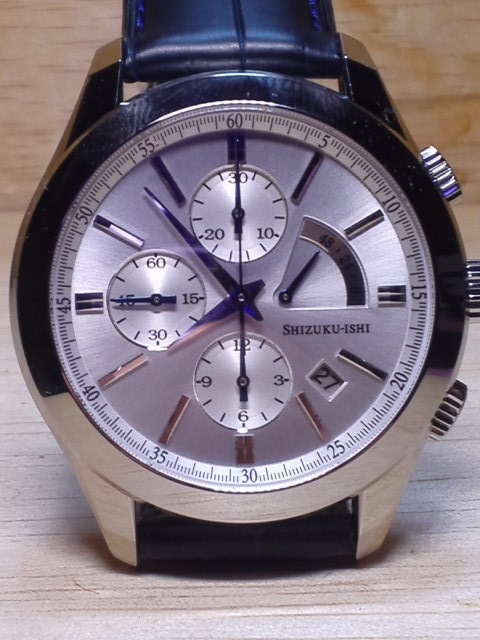 前に中古で購入した、紺文字盤の雫石オーダーのクロノグラフの視認性が悪くて、それがどうにも我慢出来ませんで、7月に行った時にシルバー文字盤のものをオーダーしていたんです。