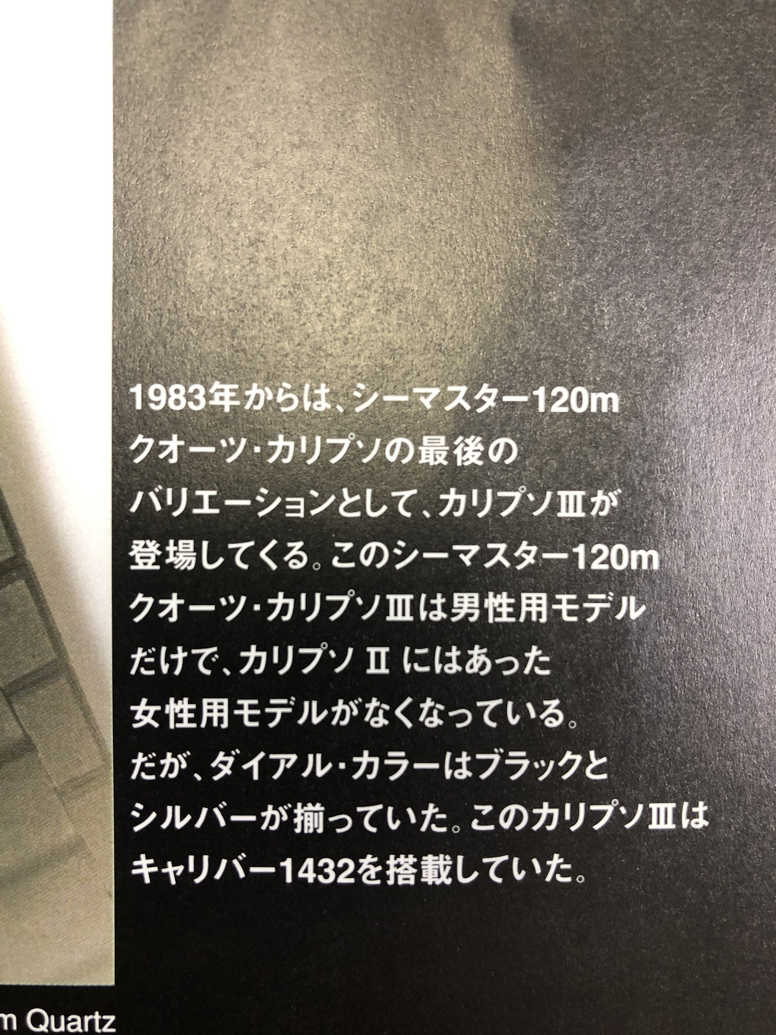 オメガのシーマスター本ではワールドムックの「シーマスター物語」はかなり詳細に記載されているバイブル的本ですが、その中にあるカリプソⅢの記事で