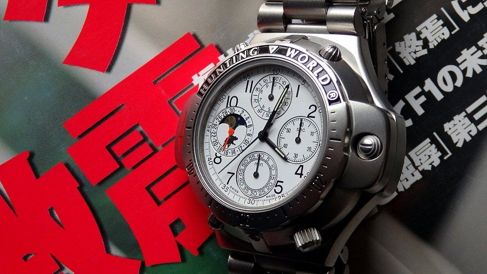 ハンティングワールド・スポータバウトクロノグラフ・ムーンフェーズ・コンパスウォッチ。