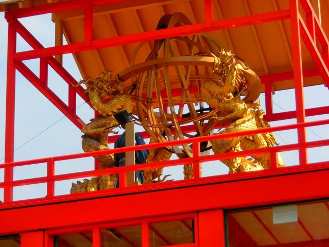 ③ 昼夜機輪(ちゅうやきりん)= 時刻を表示する5階建ての木塔