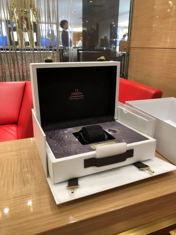 ところで、オメガのHPだと白い大きな箱に直接時計が入っているのかと思いましたが、木の箱に入っているのですか。