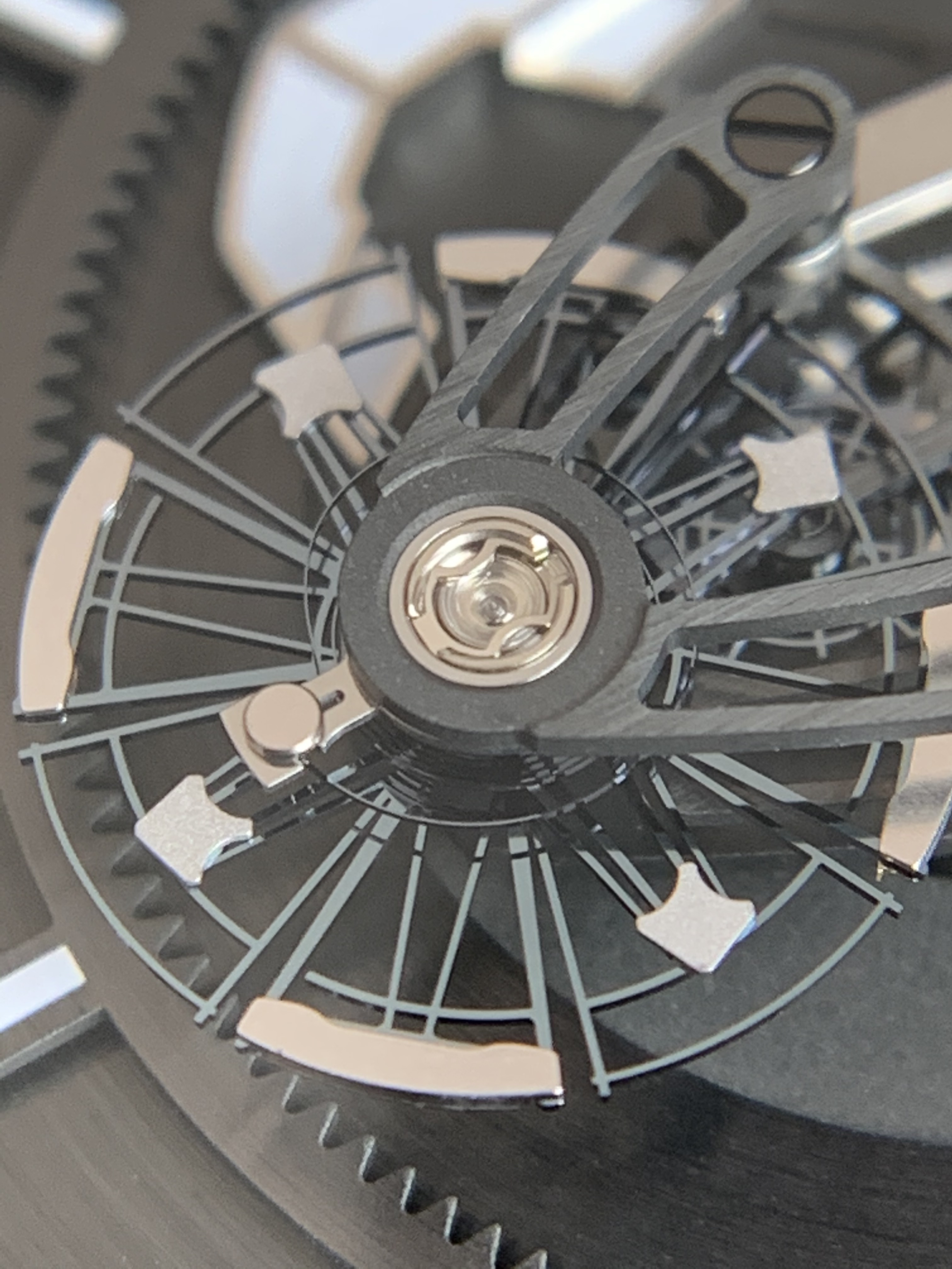 そして脱進機は4番車を固定していないカルーセル機構が採用されており、重力の影響をキャンセルできるそうです。