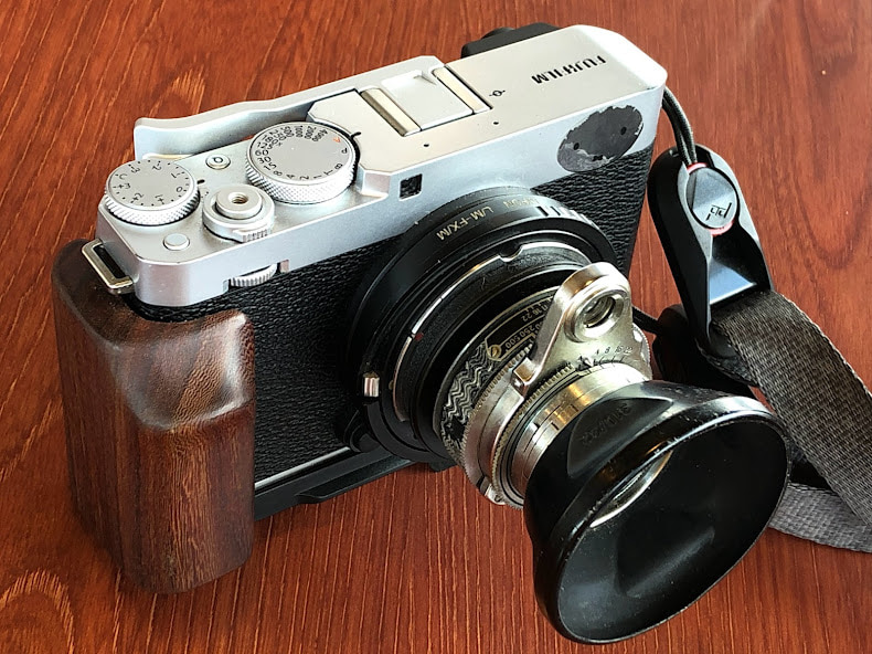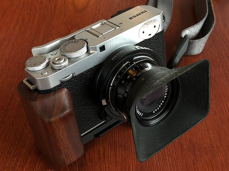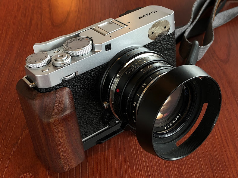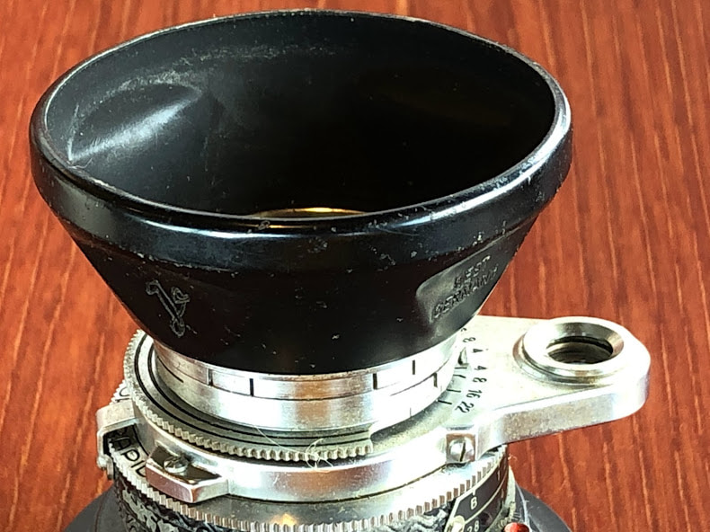 このレンズに似合うフードは角か丸かどちらか悩むものである。それもいわゆるライカ型フード