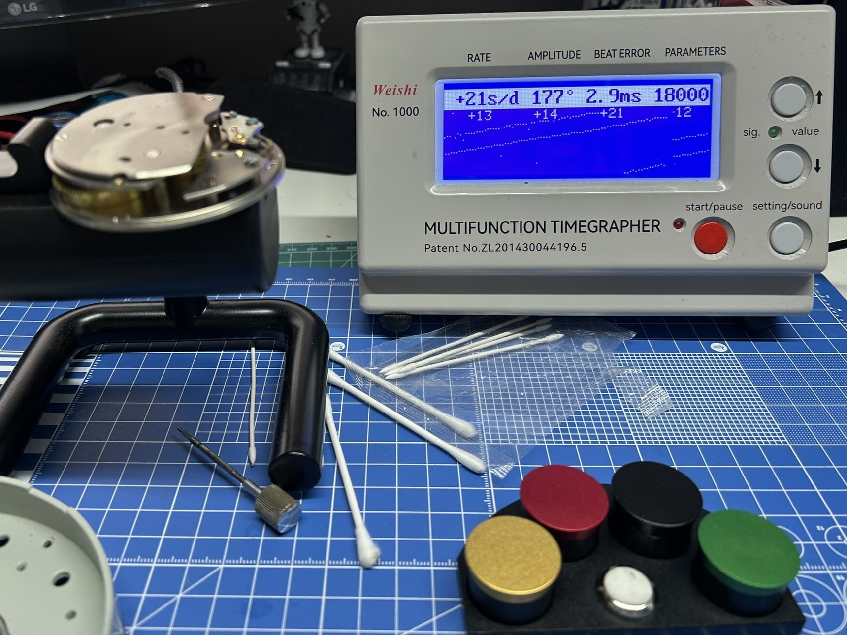 ド素人の時計屋さんごっこはここまでやればもう上出来だろうと思い、ビートエラー1.6msには目をつぶって、1週間ムーブメントの様子を観察して問題なかったらそのまま仕上げてしまおうと思っていたのですが、やっぱり気になって夜も眠れない日々が続きます…