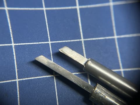 こうして材料を集め、なんの理論にも基づかず見様見真似で製作したタガネ初号機(写真1下)。これを手にした時の私は根拠のない自信で満ち溢れておりました。早速試してみましょう。きっとベルジョン製のタガネが悪かったに決まっているのです。