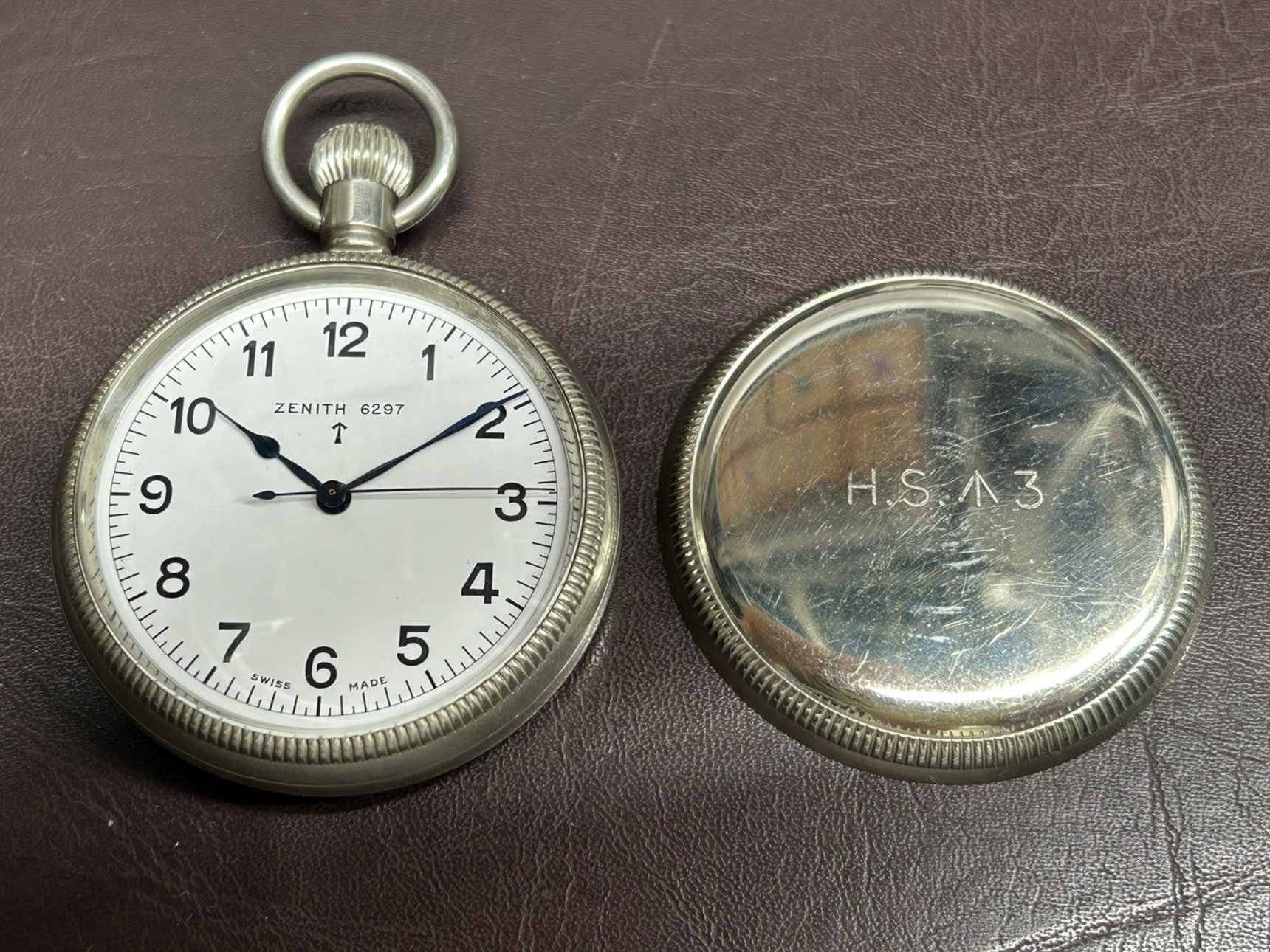 この個体を通してご紹介したい英国海軍デッキウォッチにまつわる事項として、「HS刻印」があげられます。写真2をご覧頂きたいのですが、本個体のケース裏蓋には「H.S.↑3」という刻印が刻まれています。この刻印は何を意味しているのでしょうか。