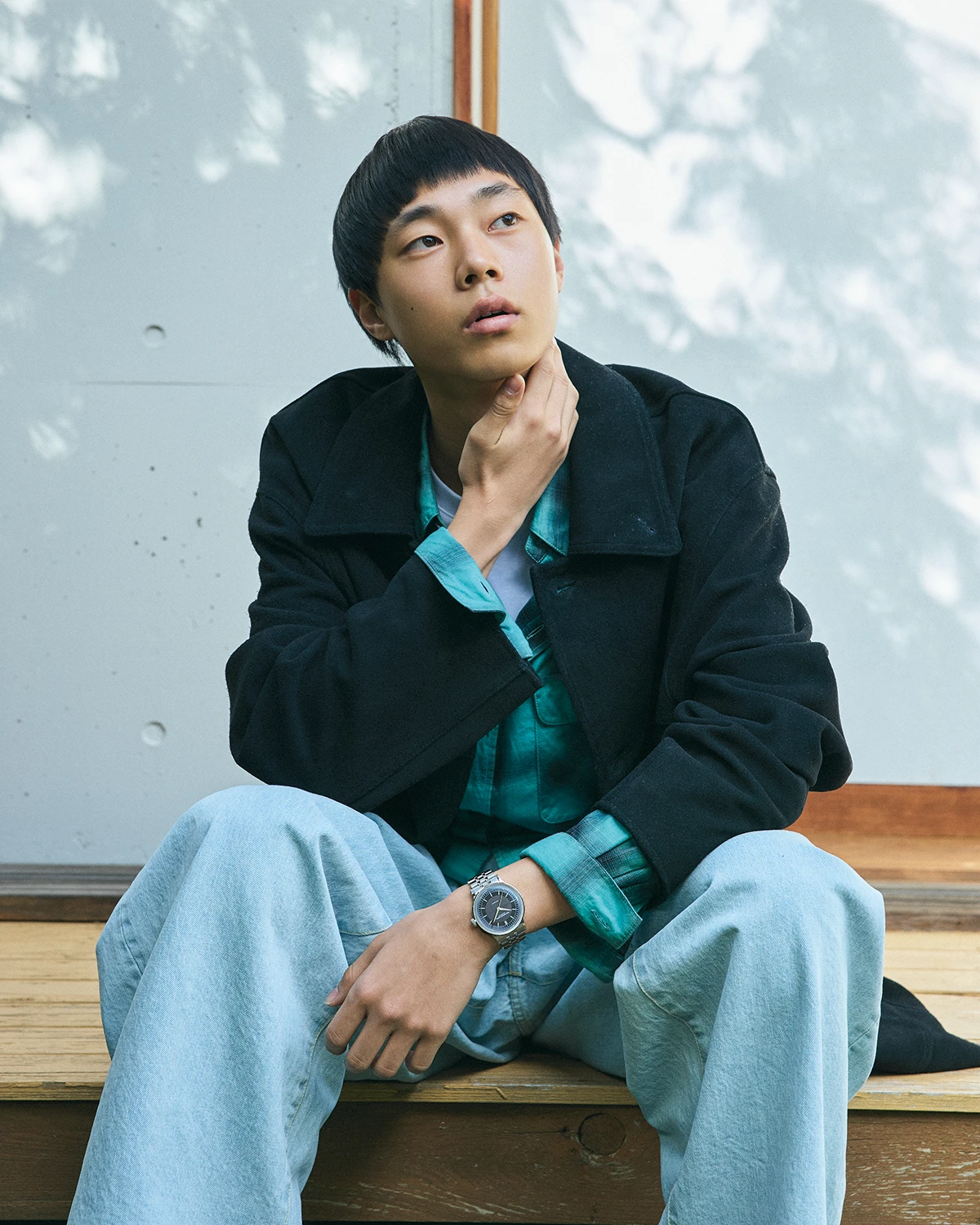 きれいめにもカジュアルにも、色や柄を含んだ着こなしにもなじむ。その普遍性は、ジャケットともコートともブルゾンとも異なるハーフコートが示してくれる。腕時計の汎用性とは、こうした装いの幅に寄り添えることでもある。