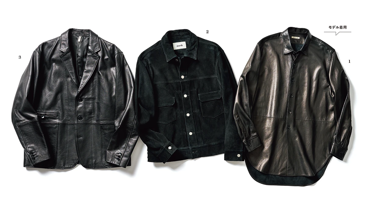 シーシーユーのサックジャケットは、インド製ネイキッドカウレザーを独自のオイルを使ったアニリン仕上げで、牛革特有の厚みと柔らかさを共存。ウエストを絞らないボックスシルエットは、体型を選ばない(写真3)。